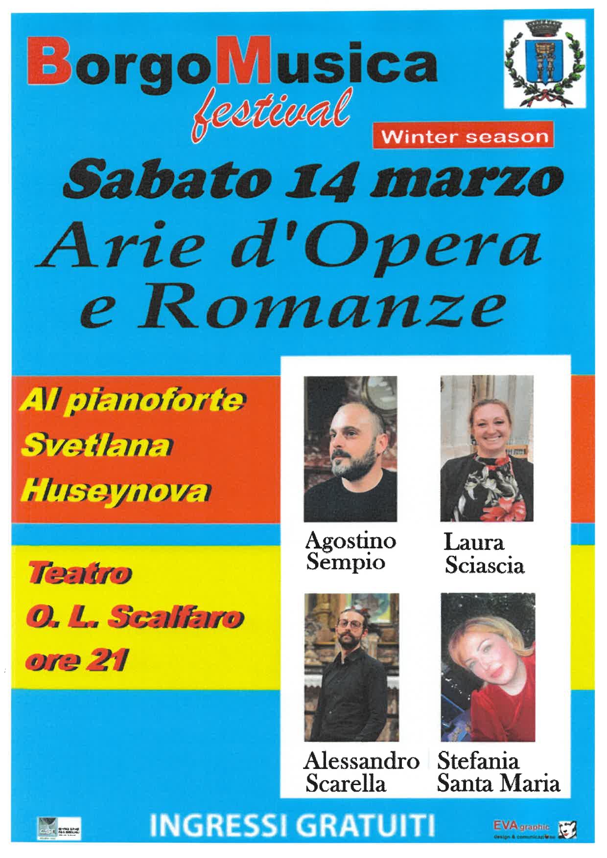 Sabato 14 marzo 2026 si terrà lo spettacolo "Arie d'Opera e Romanze" organizzato da BorgoMusica presso il Teatro Comunale O. L. Scalfaro