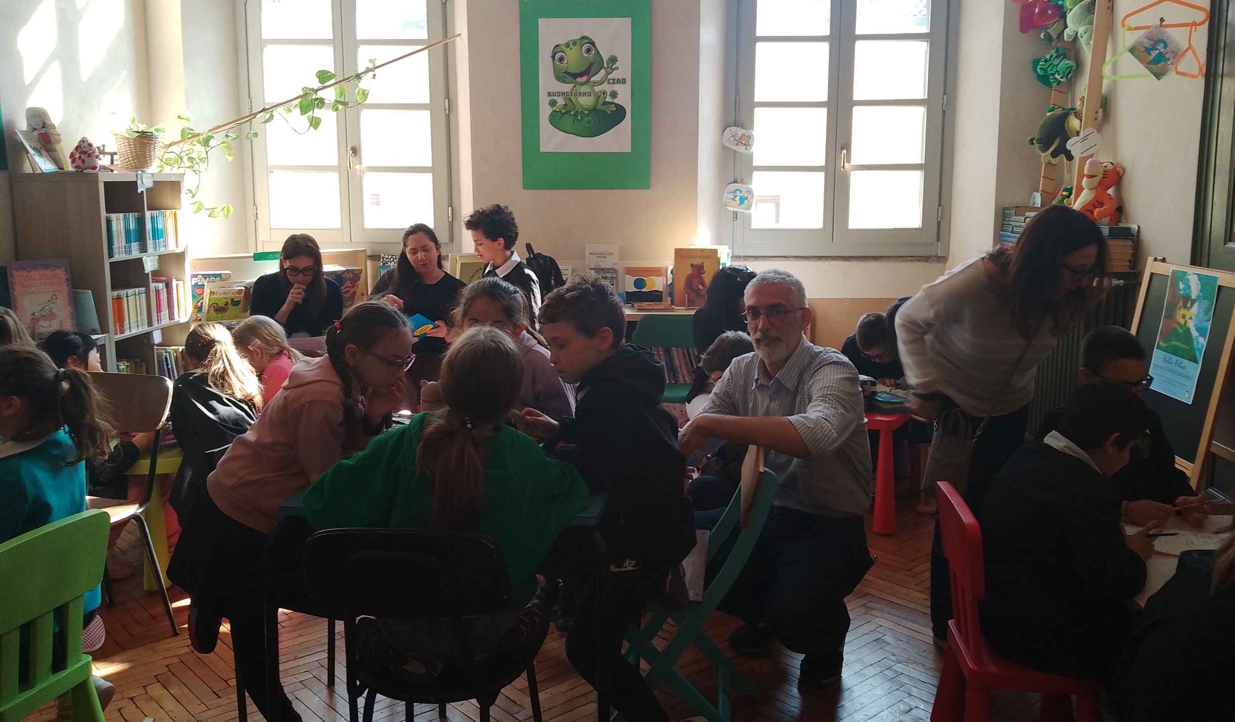 Giornata lunga, bellissima e soddisfacente. I nostri piccoli spettatori hanno interagito piacevolmente con lo scrittore con curiose domande, battute e disegni che hanno poi conservato in ricordo della giornata.